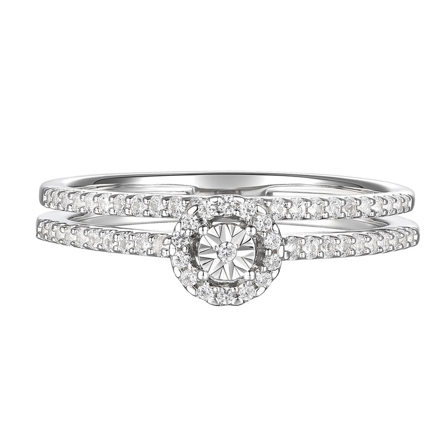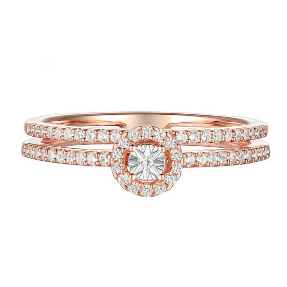 Diamond Double Band Ring - 59 Natural Diamonds in 14K Rose Gold-Plated Sterling Silver (1/4 cttw)
