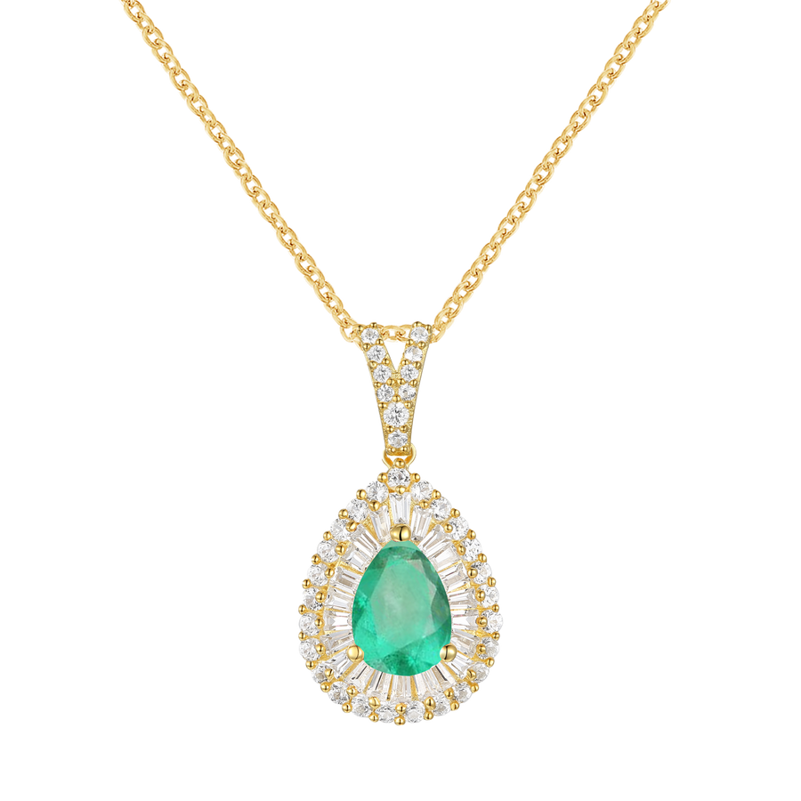 10K Genuine Emerald & 3/8 ct tw Diamond Pear Drop Pendant with 18" Chain