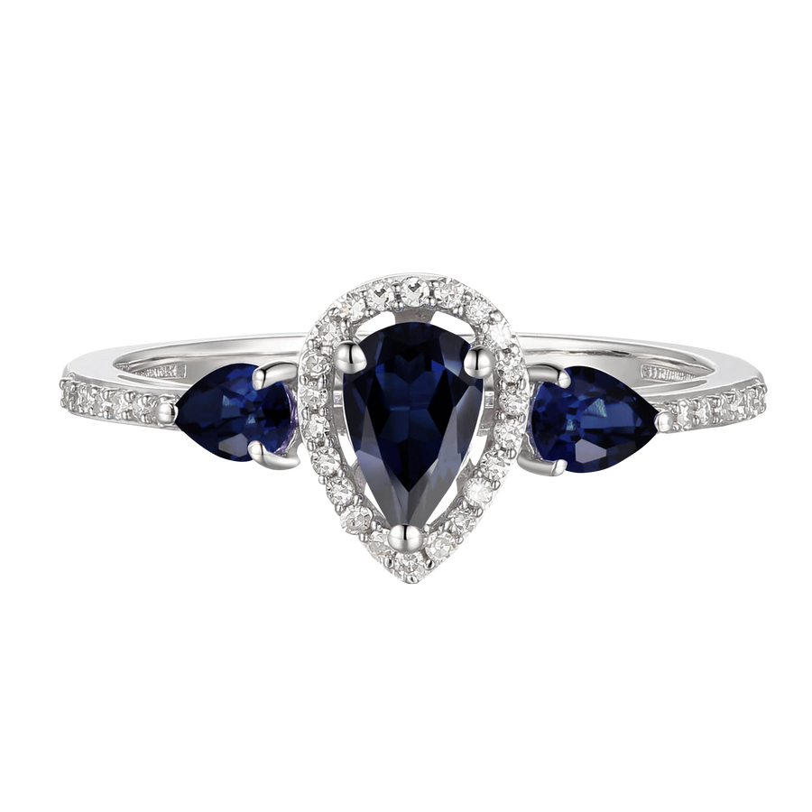 10K Genuine Sapphire & 1/10 ct tw Diamond 3-Stone Pear Ring