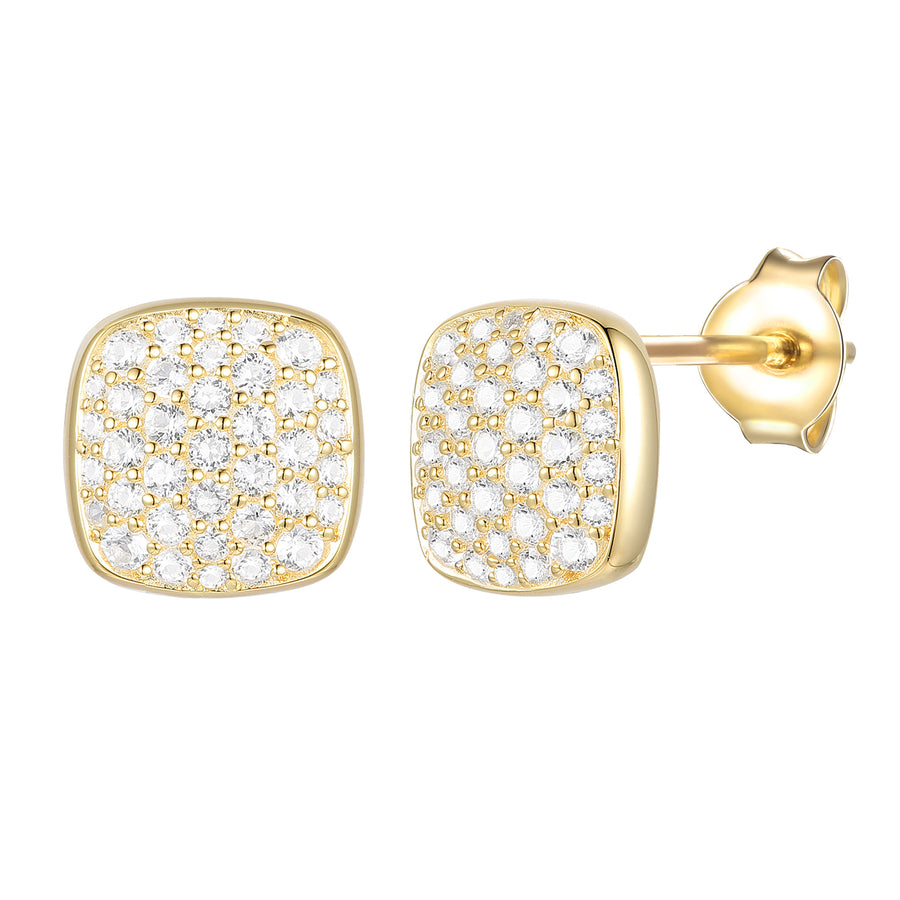 14K Yellow Gold over Sterling Silver 1/2 ct tw Diamond Cushion Shape Pavé Stud Earring (I-I2)