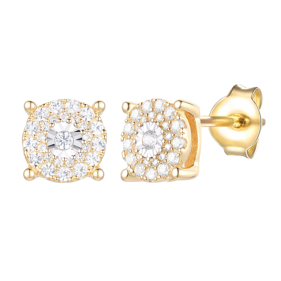 14K Yellow Gold over Sterling Silver 1/3 ct tw Diamond Miracle Plate Round Shape Earring (I-I2)