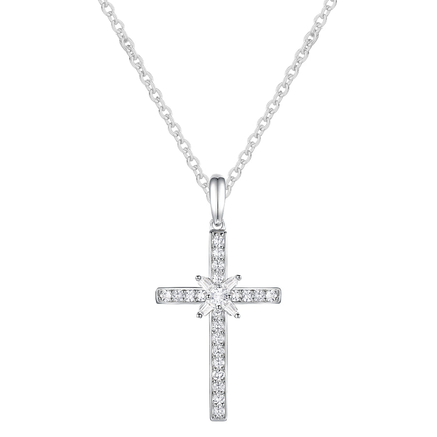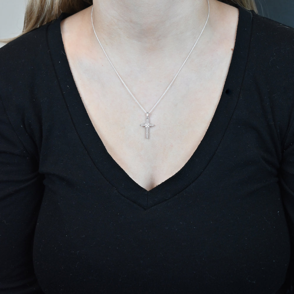 Sterling Silver 1/4 ct tw Diamond Cross Pendant with 18" Chain (I-I2)