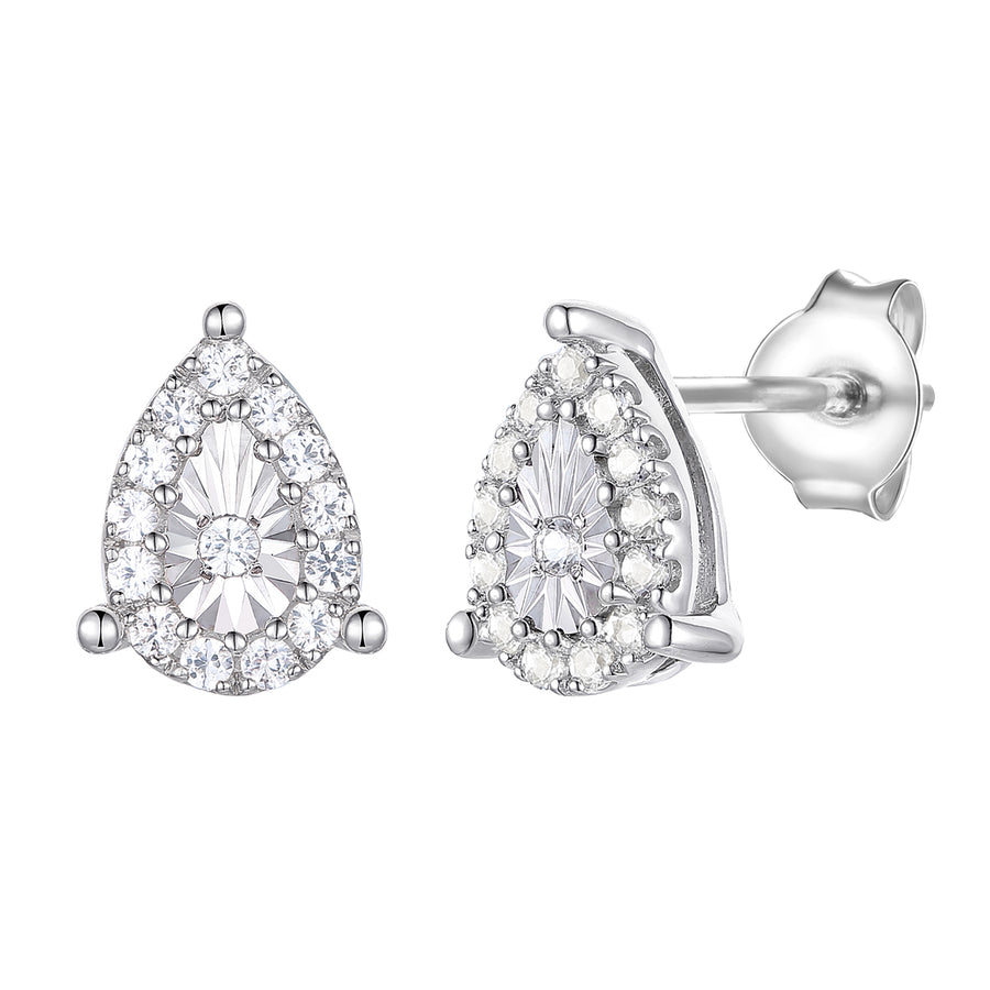 Sterling Silver 1/5 ct tw Diamond Miracle Plate Pear Shape Earring (I-I2)
