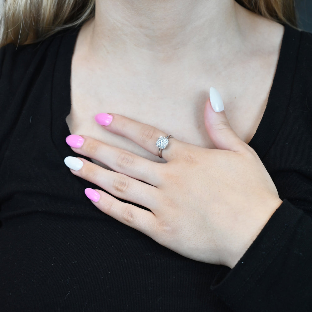 Sterling Silver 3/8 ct tw Diamond Cushion Shape Pavé Ring (I-I2)