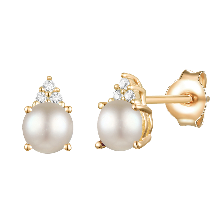 Elegant 14K Gold Stud Earrings with Diamonds and Pearl – 4.5mm Stone