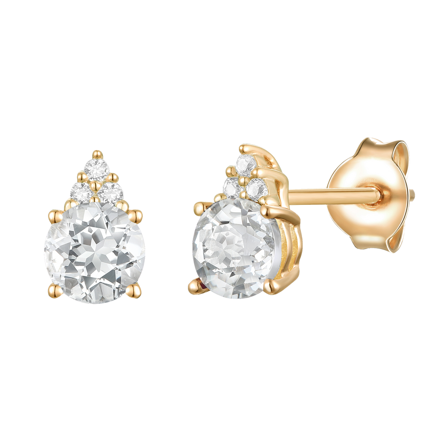 Elegant 14K Gold Stud Earrings with Diamonds and White Topaz – 4.5mm Stone