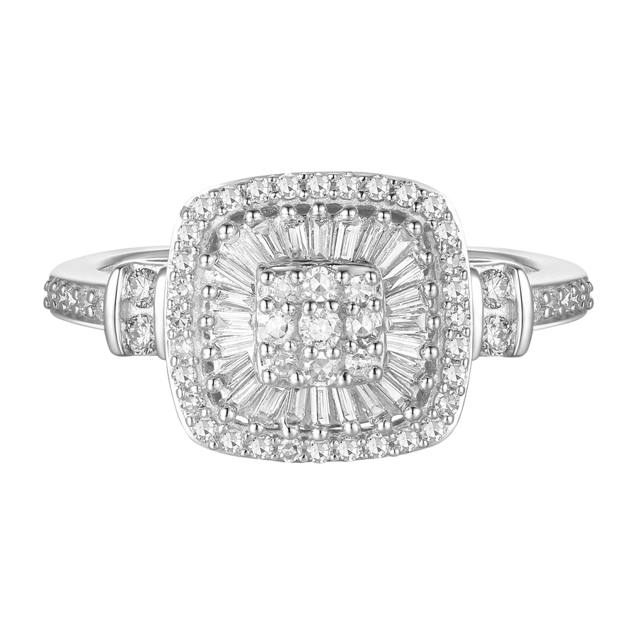 Elegant 75-Diamond Cushion Shape Ring with Round and Baguette Cut, 14K Gold Options (1/2 cttw, I-J, I2-I3)