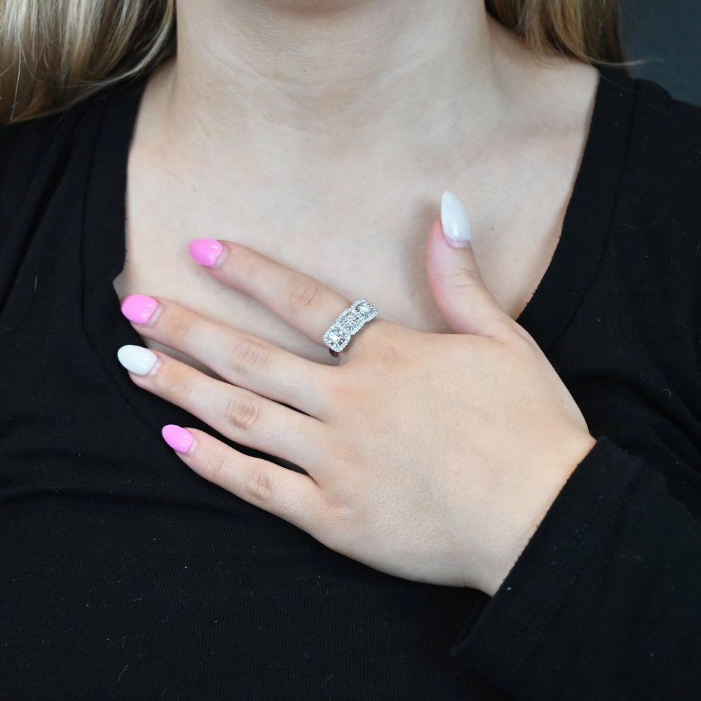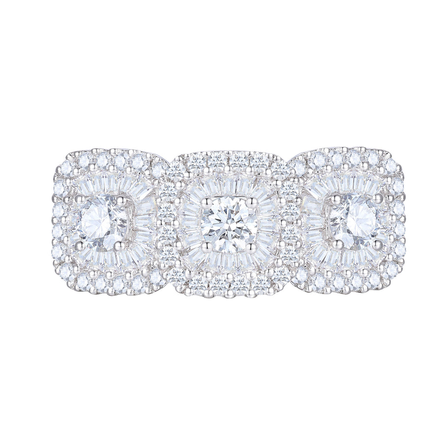 10K White Gold 1 ct tw Round and Baquette Diamond Multi Cushion Shape Ring (I-I2)