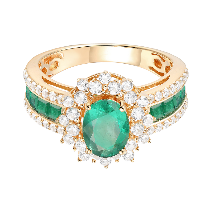 Experience timeless elegance with our Genuine 14K Gold Oval Emerald and Diamond Ring. A vibrant green emerald surrounded by sparkling natural diamonds creates a stunning piece that exudes sophistication. Ideal for marking special occasions or adding a luxurious touch to any day