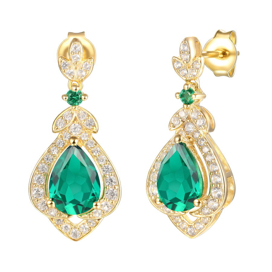 Tirafina Floral Drop Earrings Created with gemstones and white Sapphire Accents Gold Plated Silver Drop Earrings (7x5mm Stones)