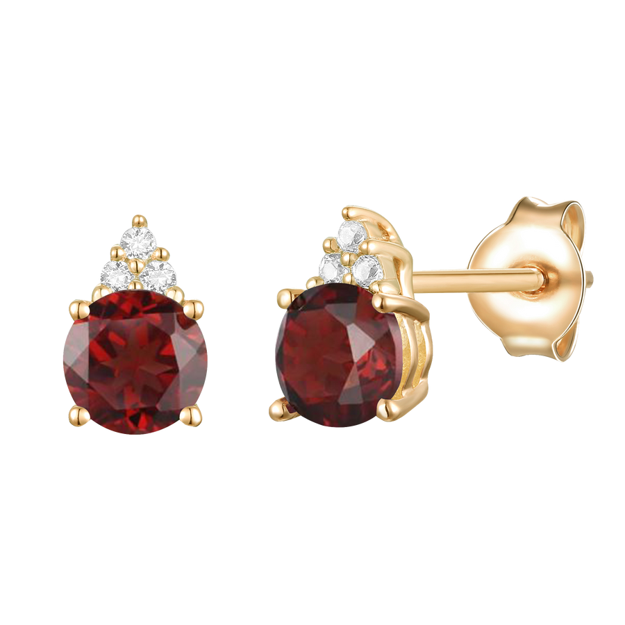 Unveil the beauty of passion and elegance with these Diamond and Garnet Stud Earrings by Tirafina. Expertly crafted in your choice of 14K Rose Gold, Yellow Gold, or White Gold, each earring features a striking 4.5mm round garnet, known for its deep red hue that symbolizes love, strength, and vitality. Surrounding the garnet are three dazzling natural diamonds (0.03 cttw), adding a touch of brilliance and timeless beauty.
