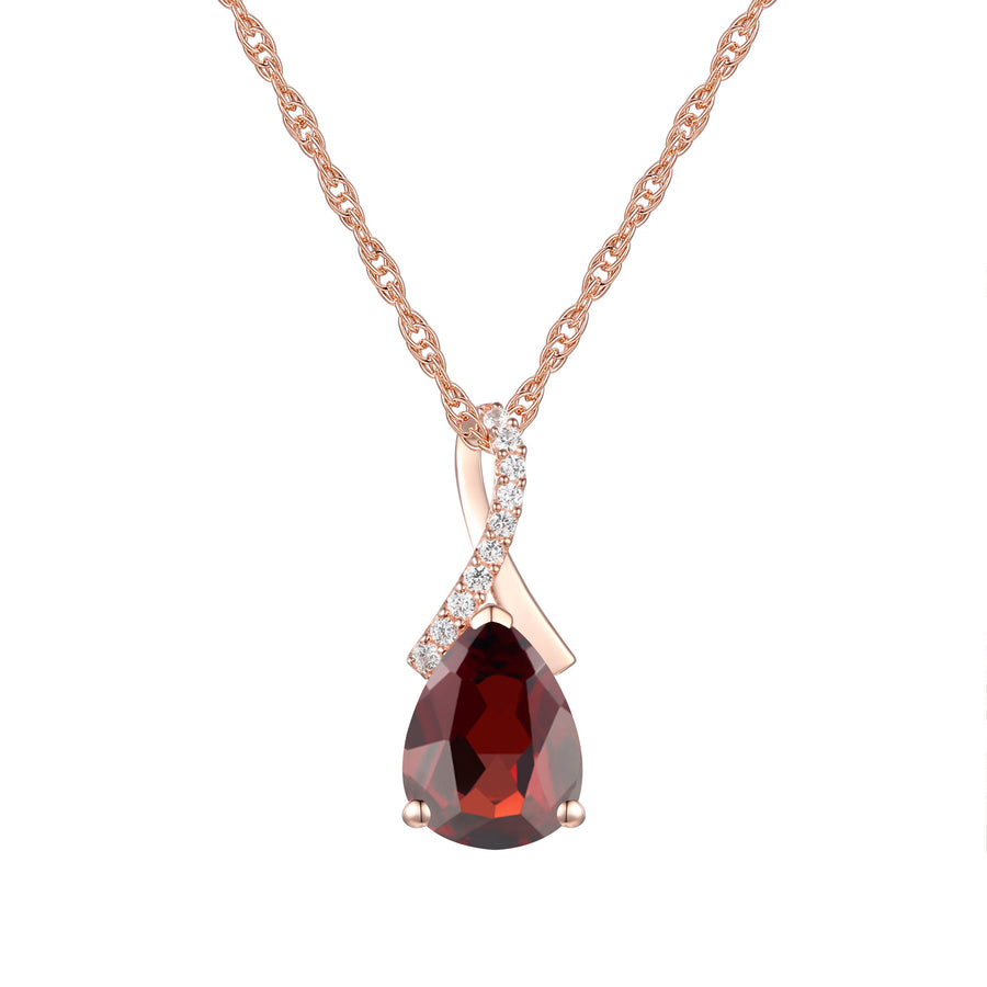 A Symbol of Love and Elegance – This enchanting necklace is designed to capture the beauty of your most cherished moments. Featuring a dazzling 9x7mm center gemstone, delicately embraced by shimmering created white sapphires, this pendant glows with timeless romance. Crafted in 14K rose gold-plated sterling silver, its warm hues add a touch of passion and sophistication.