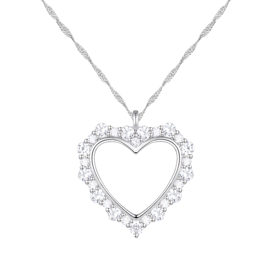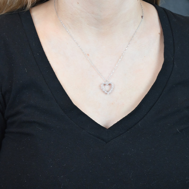 Celebrate love and elegance with this exquisite Diamond Heart Necklace, crafted in radiant 10K white gold. Featuring a delicate heart-shaped design adorned with sparkling 1/2 carat total weight round lab growndiamonds, this piece captures the brilliance of your affection in every shimmering detail. Whether as a romantic gift or a timeless addition to your jewelry collection, this necklace symbolizes unending devotion and beauty. A perfect choice for special occasions or to make any day unforgettable