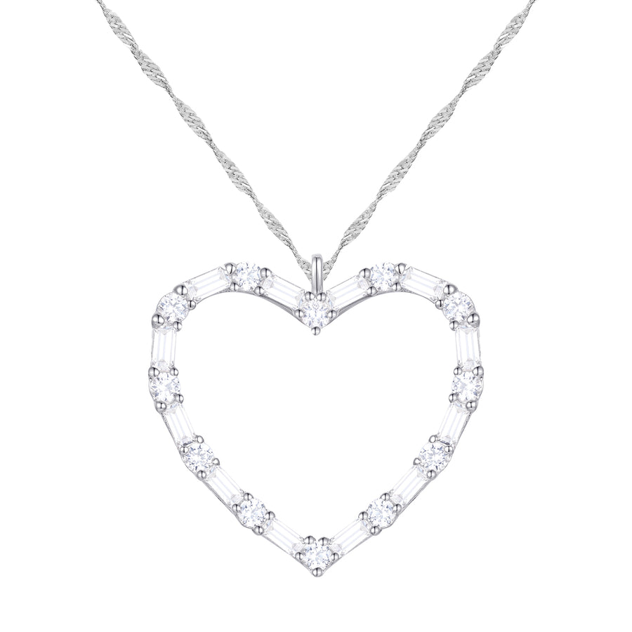 Natural Diamonds Heart Necklace, 10KT White Gold or Yellow Gold , 1/2CTTW Round and Baguette I - I2