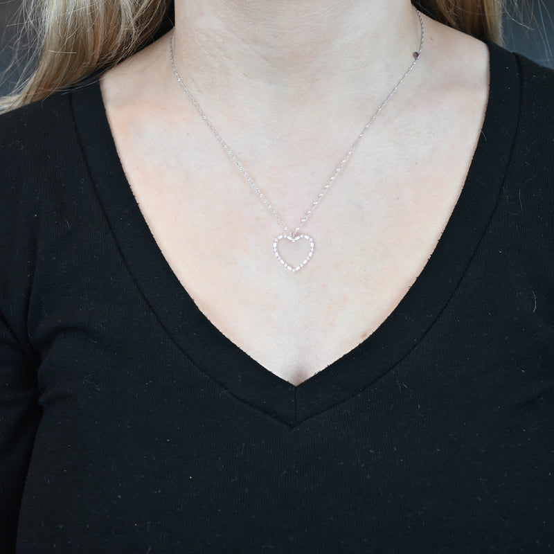 Delight in the charm of this stunning Natural Diamonds Heart Necklace, a true masterpiece of design and craftsmanship. Available in your choice of 10KT white gold or yellow gold, this necklace sparkles with 1/2 CTTW of round and baguette-cut natural diamonds. Featuring diamonds of I-I2 clarity, the heart-shaped pendant is a radiant symbol of love and devotion. Whether for yourself or a cherished loved one, this elegant necklace is the perfect way to celebrate life’s most meaningful moments