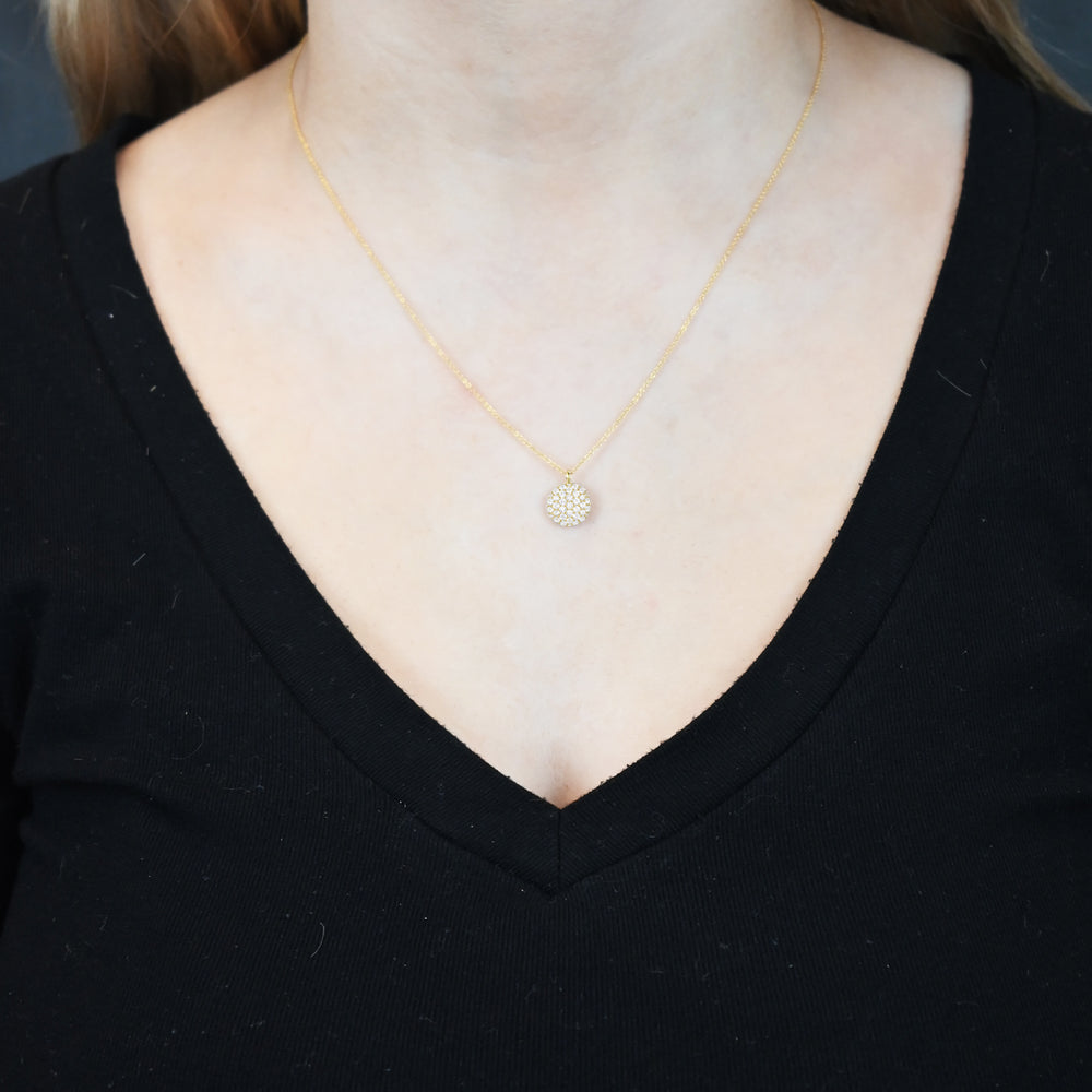 14K Yellow Gold over Sterling Silver 1/2 ct tw Diamond Round Shape Pavé Pendant with 18" Chain (I-I2)