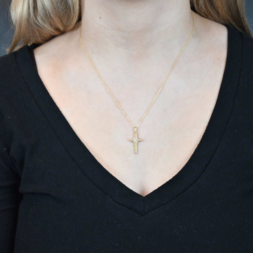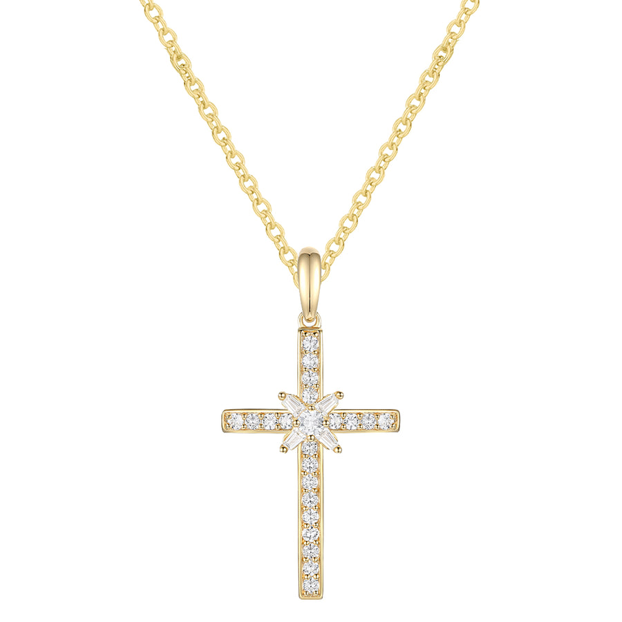 Experience the timeless beauty of the 14K Yellow Gold over Sterling Silver 1/4 ct tw Diamond Cross Pendant with 18" Chain (I-I2), a remarkable addition to our Necklaces collection. This premium-quality Necklaces is perfect for those who appreciate fine craftsmanship and lasting elegance. The 14K Yellow Gold over Sterling Silver 1/4 ct tw Diamond Cross Pendant with 18" Chain (I-I2) is designed to capture attention, making it an excellent choice for diamond. Made with premium materials like sterling silver and natural diamonds, it offers both durability and unmatched style. Elevate your look with this exquisite Necklaces, crafted to enhance your individuality and make every moment unforgettable. Shop now to discover a Necklaces that combines beauty, quality, and sophistication.