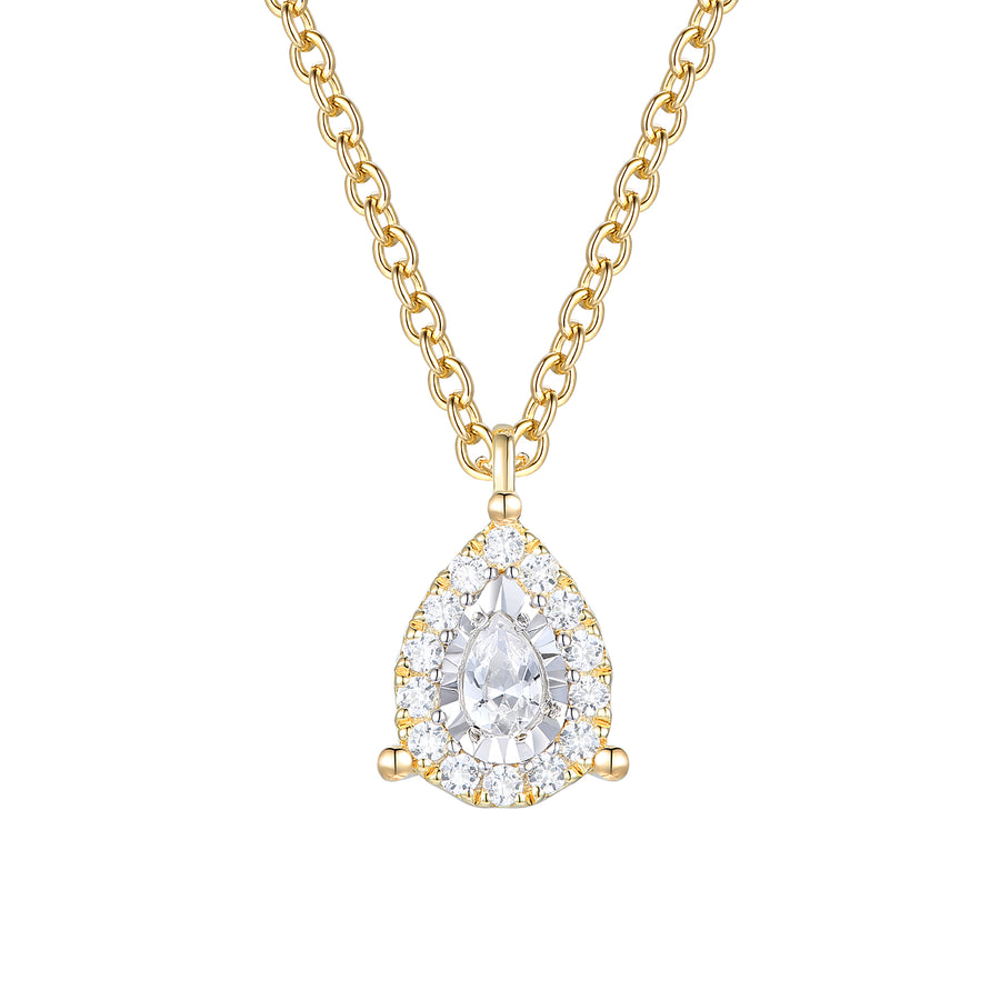 14K Yellow Gold over Sterling Silver 1/4 ct tw Diamond Miracle Plate Pear Shape Pendant with 18" Chain (I-I2)