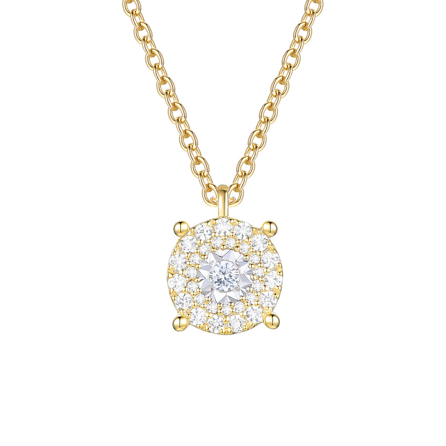 14K Yellow Gold over Sterling Silver 1/4 ct tw Diamond Miracle Plate Round Shape Pendant with 18" Chain (I-I2)