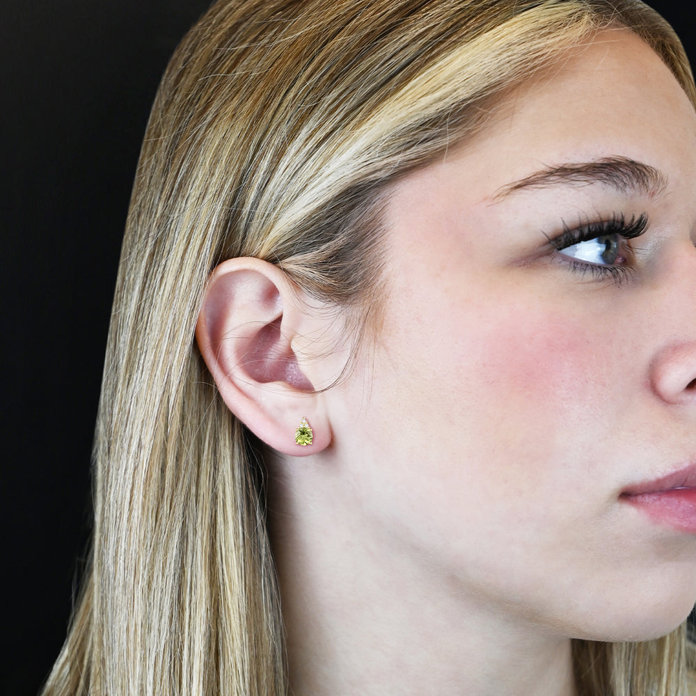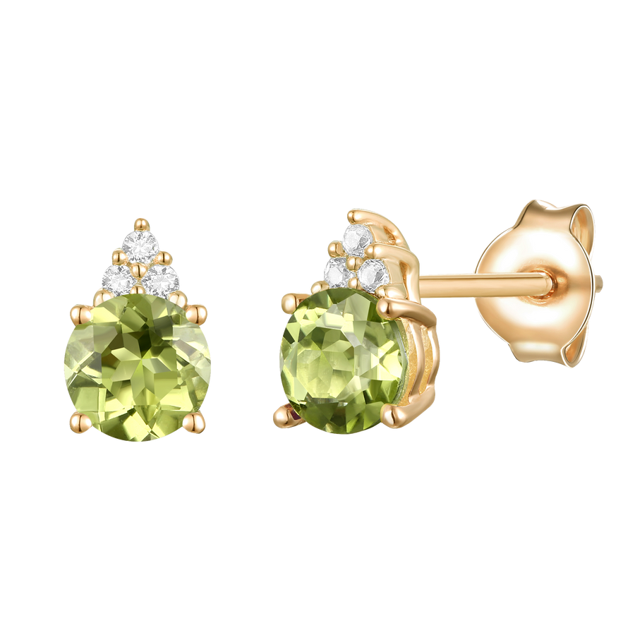 Elegant 14K Gold Stud Earrings with Diamonds and Peridot – 4.5mm Stone