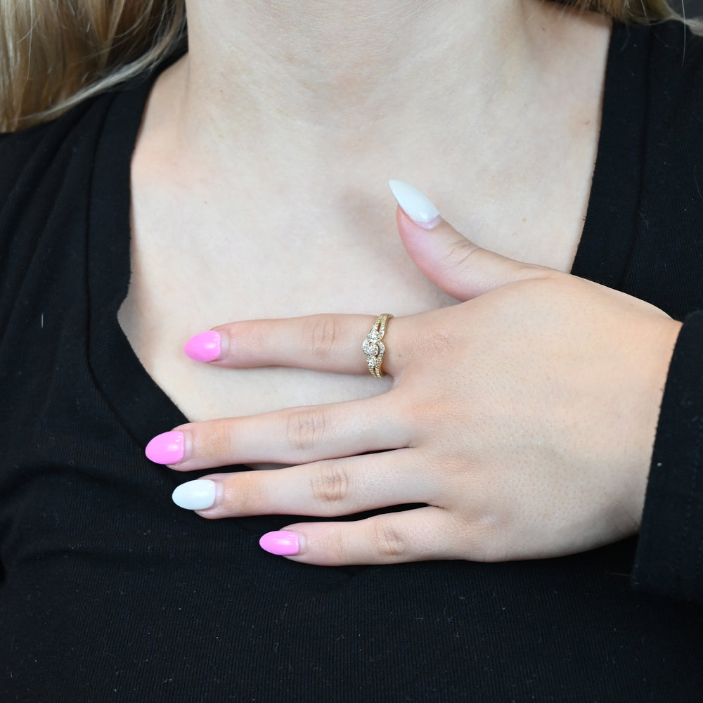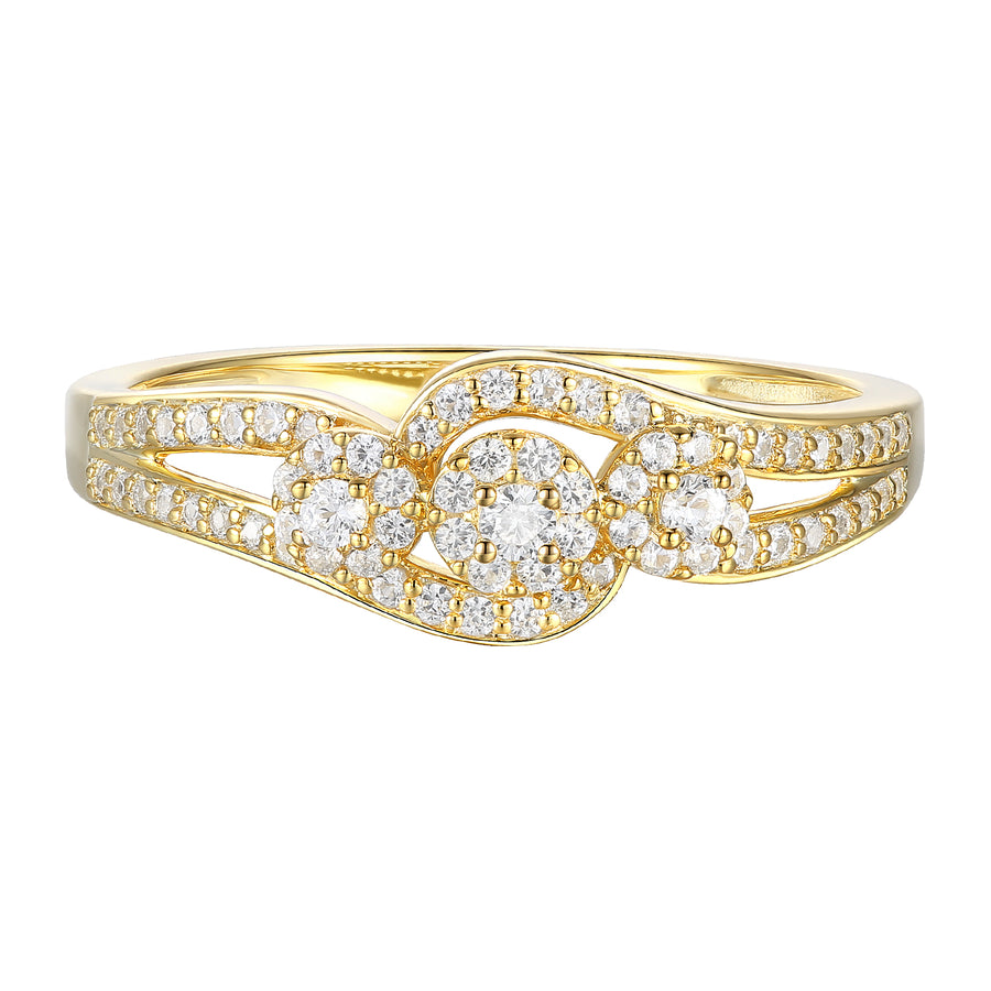 14K Yellow Gold over Sterling Silver 1/3 ct tw Diamond Ring with 3 Halo Stations (I-I2)