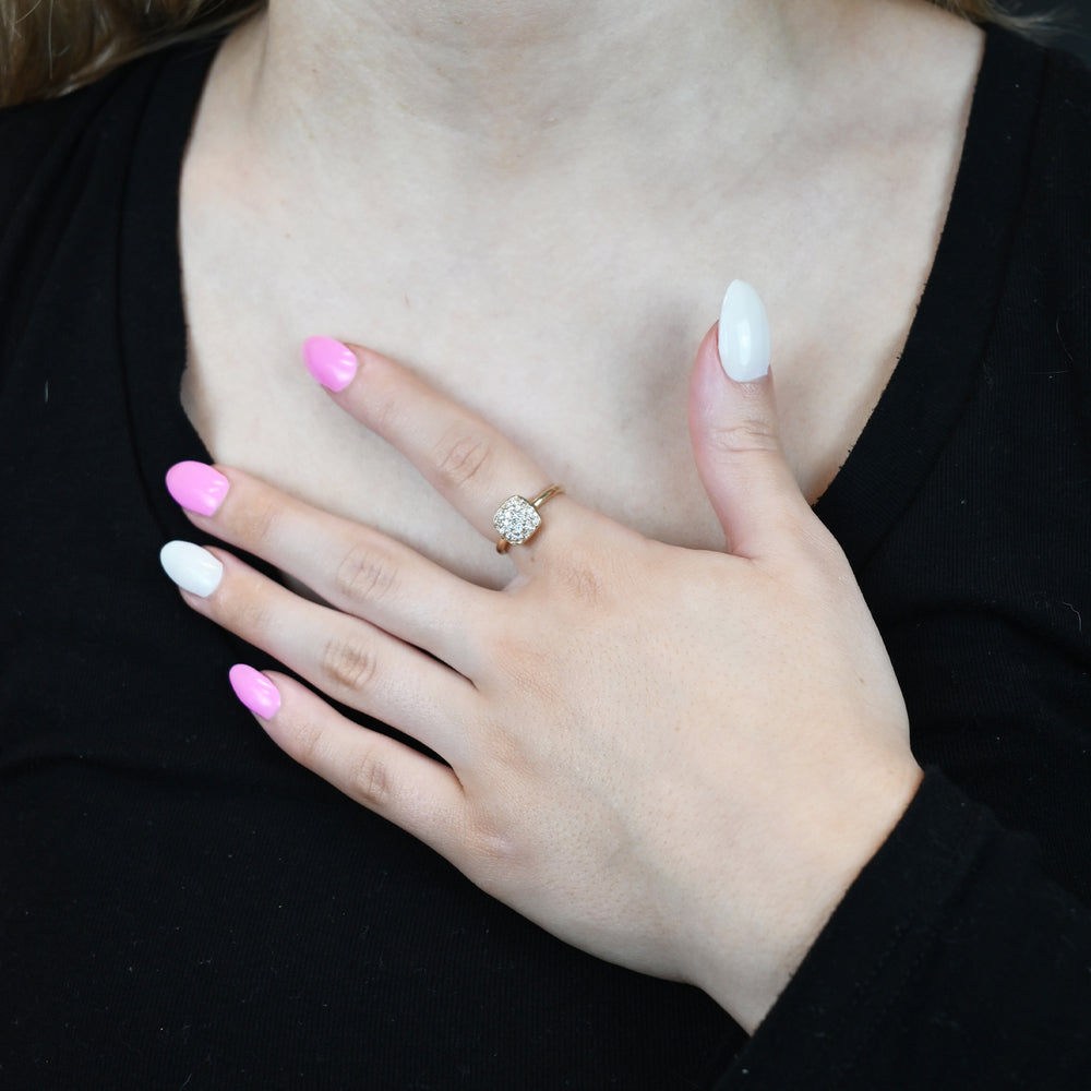 14K Yellow Gold over Sterling Silver 3/8 ct tw Diamond Cushion Shape Pavé Ring (I-I2)