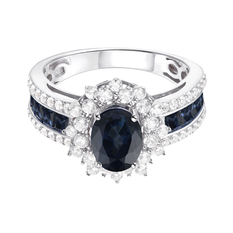 Genuine 14K White Gold Oval Sapphire and Diamond Statement Ring
